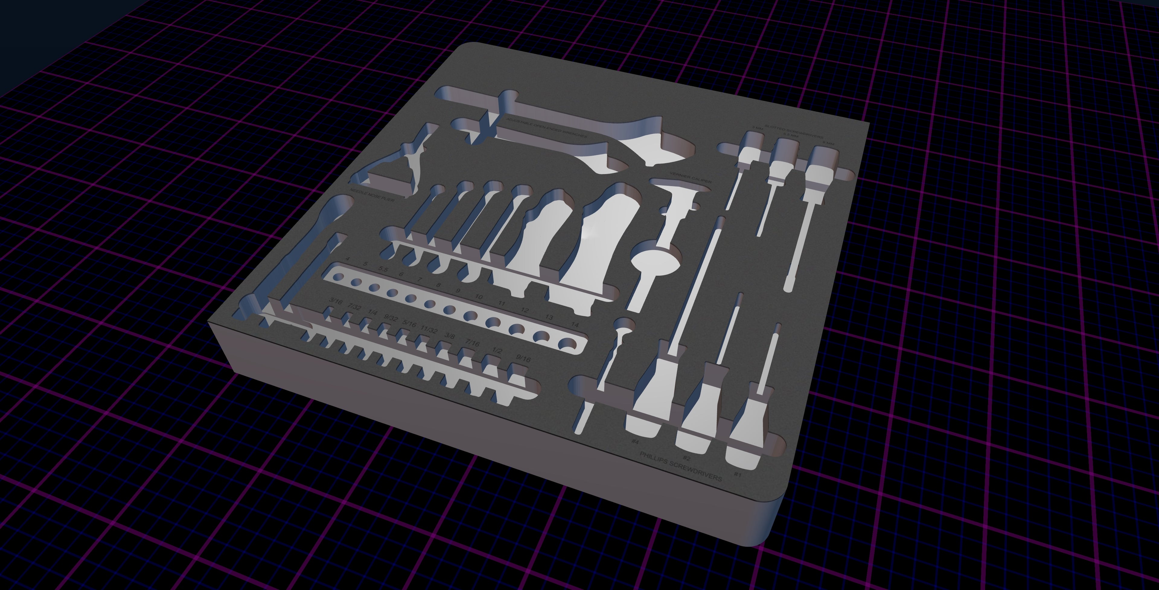 We have Databases with many standard tools and items from past projects that can be leveraged to start your design. We can also import your CAD files of parts, work with Tracings, and offer both 2D and 3D scanning. For image scanning all tool images are captured digitally onsite, so you are never without your tools.